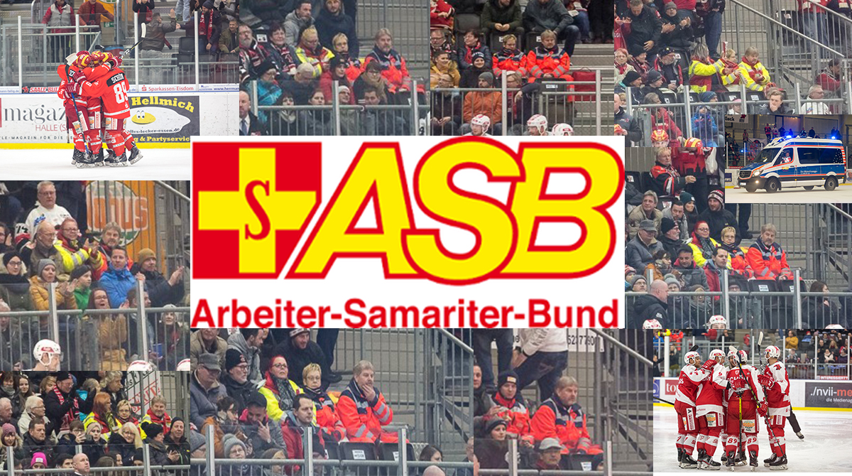 Seit nun schon 10 Jahren begleiten uns die Mitarbeiter des ASB RV Halle/Bitterfeld e.V., sind zur Stelle, wenn sich Spieler auf dem Eis verletzen. Doch auch wenn es mal einem Fan aufgrund heftiger Emotionen nicht so gut geht, kommen sie zur Hilfe.