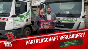 Partnerschaft verlängert: Firma Halcon bleibt Sponsor der Saale Bulls