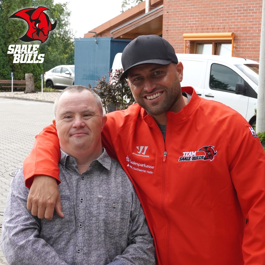 Halle. Unterwegs unweit der Dölauer Heide: Die Mannschaft der Saale Bulls, das Trainer-Team und die Geschäftsstelle haben gemeinsam die Hauptwerkstatt der Halleschen Behindertenwerkstätten (HBW) besucht.